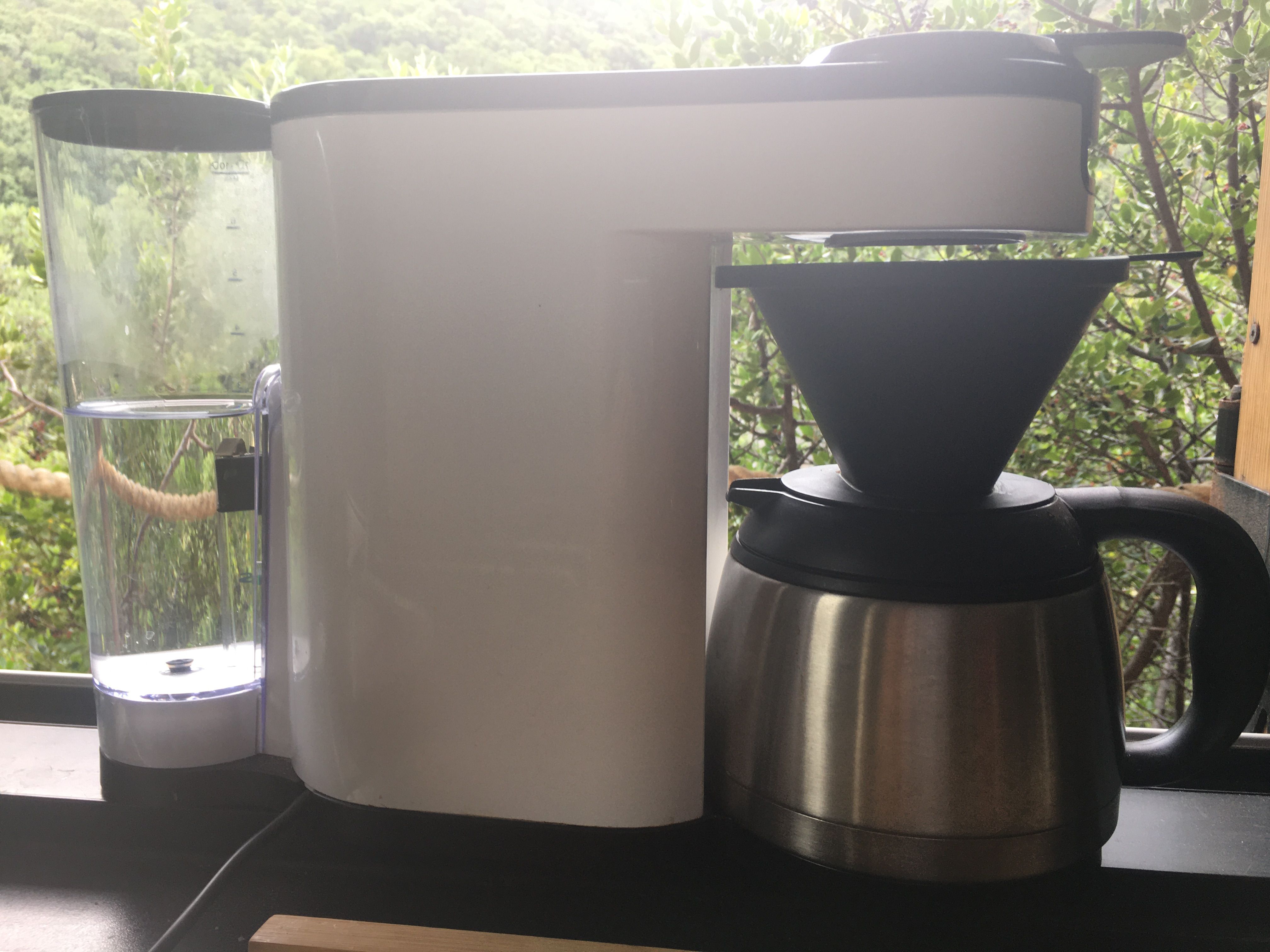 Cafetière de type Senseo, elle fonctionne aussi bien avec du café en dosette filtre rond (photo 3) qu'avec du café en vrac et des filtres traditionnels taille N°2 (photo 2)