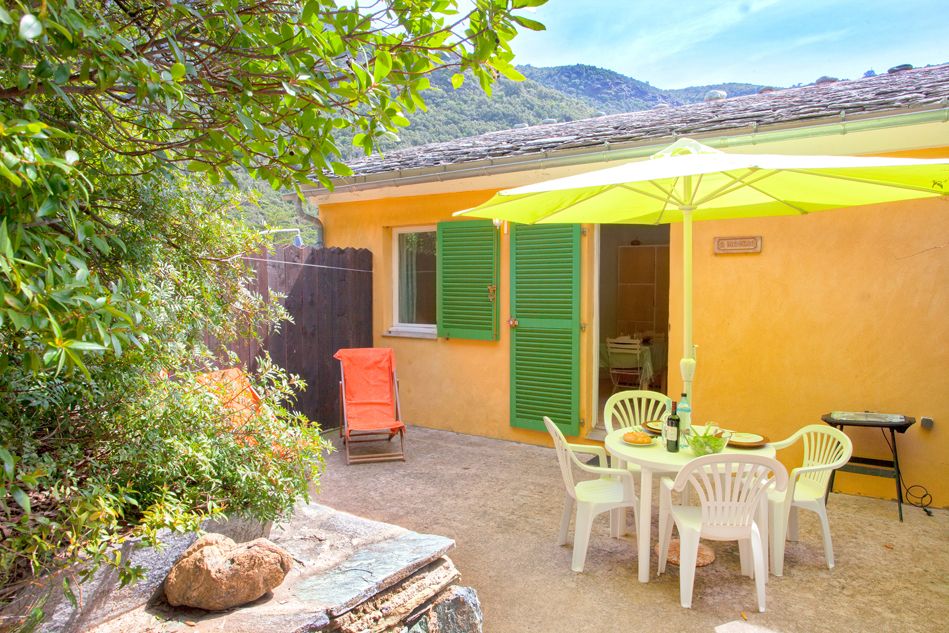 A l'extérieur vous disposez d'une belle terrasse équipée d'un barbecue et d'un salon de jardin avec vue sur le maquis.