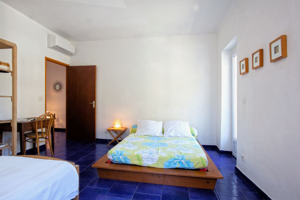 Cette maison se compose de deux chambres climatisées à l'étage : une chambre avec un grand lit de deux places et une chambre de quatre couchages (un lit de deux places et deux lits d'une place), d'une salle d'eau et d'un WC séparé.