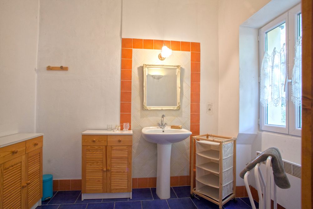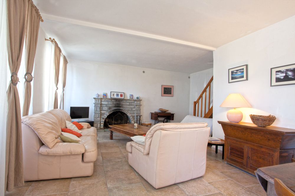 Au rez-de-chaussée se trouvent la cuisine et un grand séjour équipé d'un convertible (Clic-Clac) et d'une cheminée. Ces pièces restent fraiches même en été.