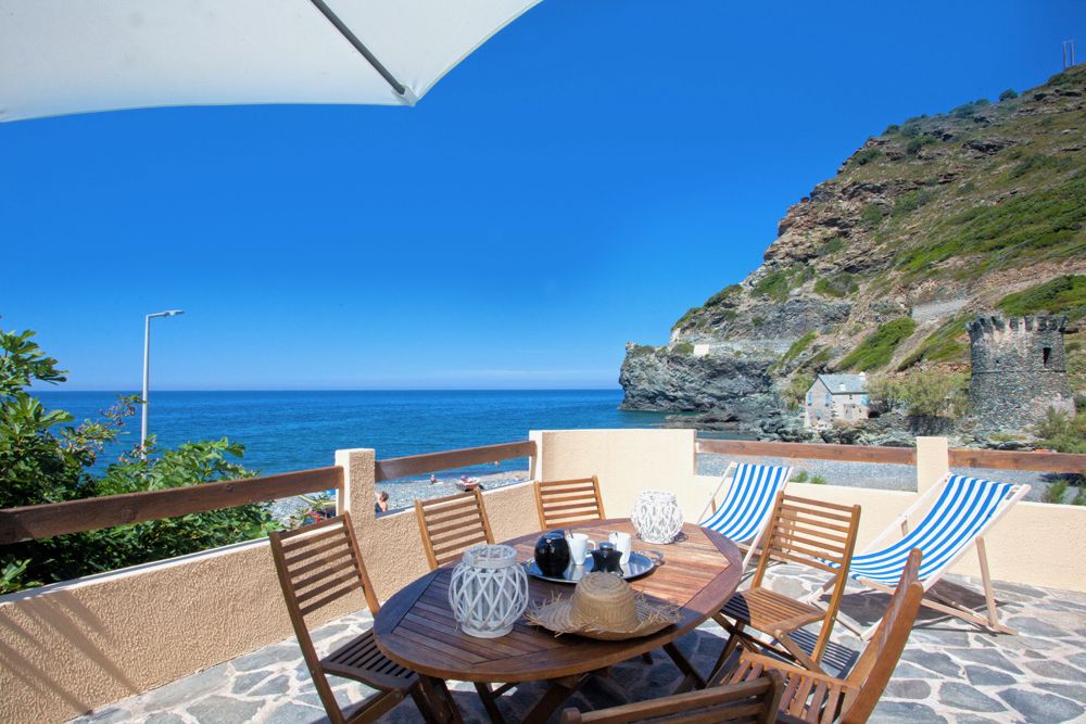 Cette maison de 6-8 couchages est située au bord d'une superbe plage de galets, face à une tour génoise du XVIème siècle.