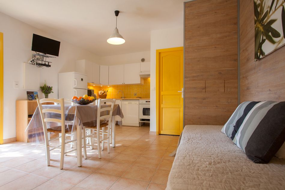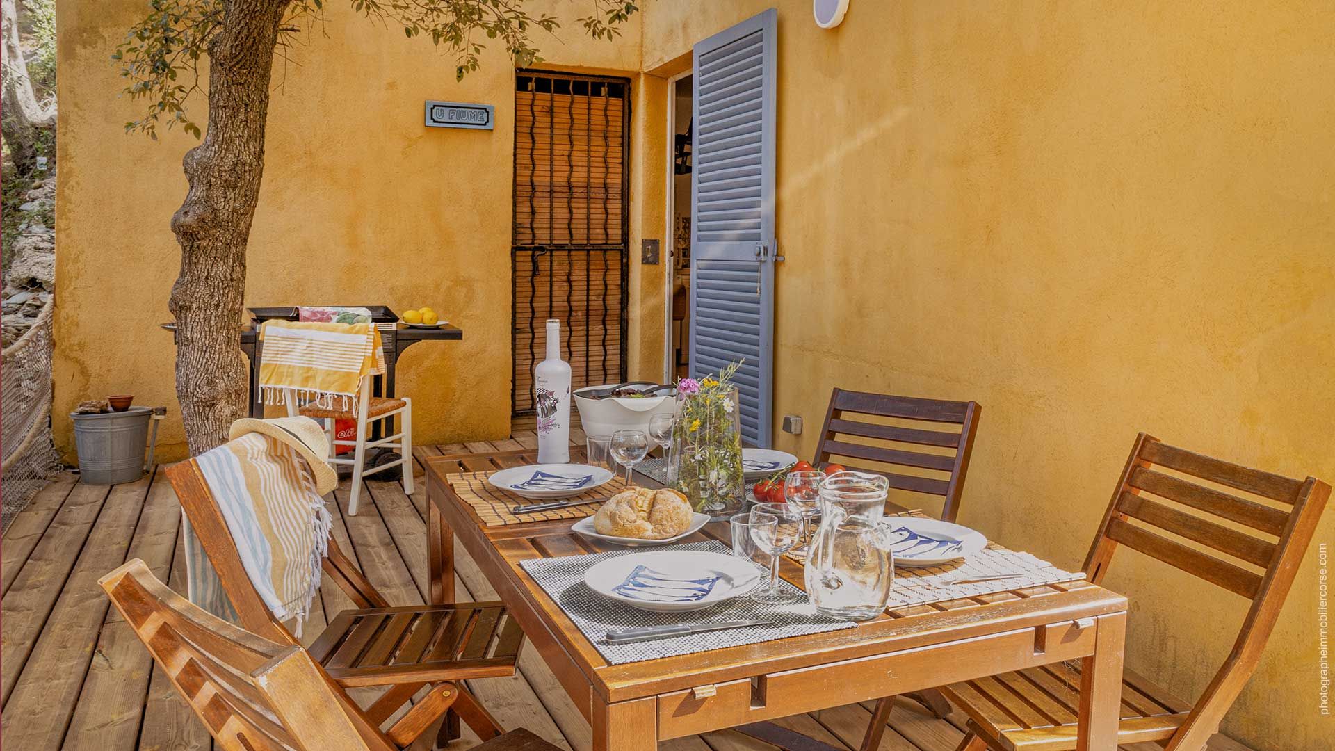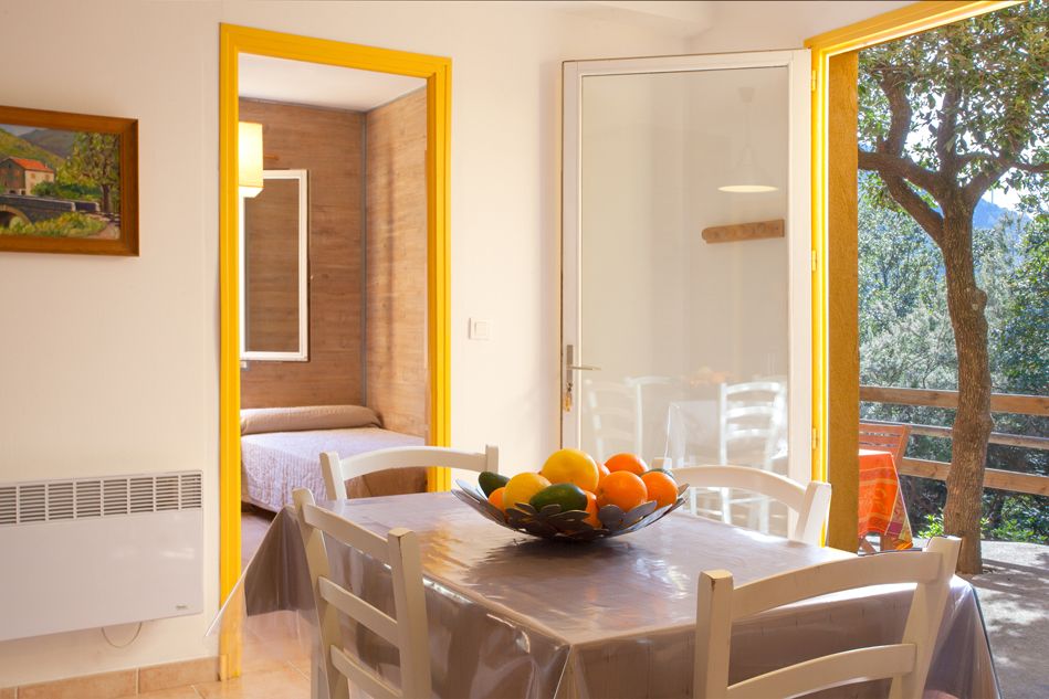 U Fiume is a 3-star lodge with a double beded room, another bedroom with two single beds, a living room (including an extra single bed) with a fully equipped kitchen area (ceramic hob, combined microwave oven, toaster, coffee machine, kettle, ...) and a bathroom with shower and toilets. Outside: beautiful 48 sqm terrace with garden furniture and a maquis view.