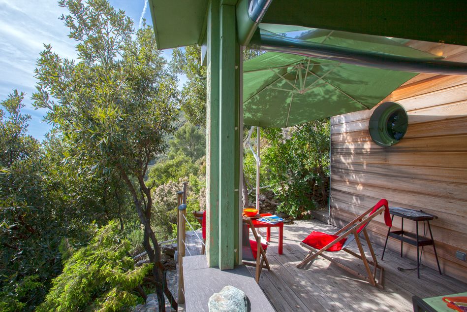A fronda est un éco-gîte de 2 couchages qui donne la sensation d'être dans les arbres et offre de la terrasse une vue panoramique sur la marine de negru et le golfe de saint florent. La plage est à 10 mn à pied, une rivière borde la propriété et un sentier est accessible directement du gîte.