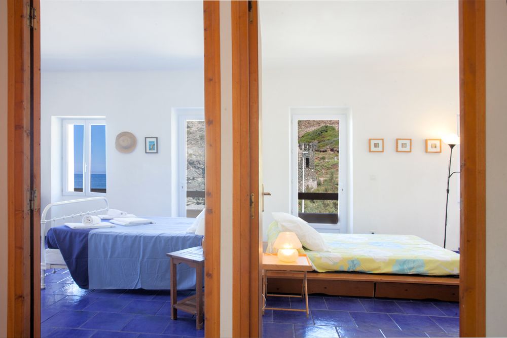 Cette maison se compose de deux chambres climatisées à l'étage : une chambre avec un grand lit de deux places et une chambre de quatre couchages (un lit de deux places et deux lits d'une place), d'une salle d'eau et d'un WC séparé.
