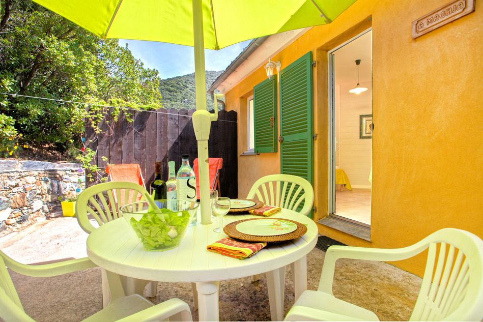 A Maghja est un gîte/studio dans une maison à flanc de montagne, il possède une entrée indépendante par une terrasse privative. La plage est à 10 minutes à pied et la rivière coule en bordure de la propriété, des sentiers de randonnée sont accessibles directement du gîte.